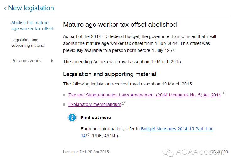 详情请参阅:https://www.ato.gov.au/General/New-legislation/In-detail/Direct-taxes/Income-tax-for-individuals/Abolish-the-mature-age-worker-tax-offset/